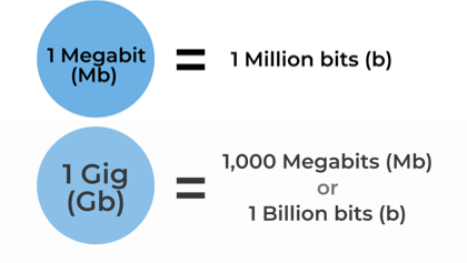 You'll also hear terms like megabit (Mb), which is equal to 1 million bits. For some perspective, it takes one thousand megabits to equal one gigabit. We've just thrown a lot of numbers at you, but here's the gist: